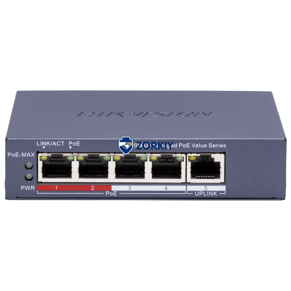 Hikvision DS-3E0105P-E/M(C) POE Комутатор 4 порти некерований