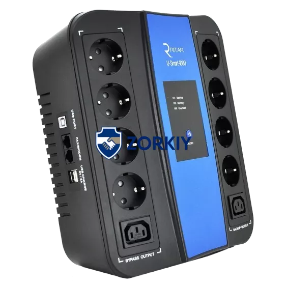 Ritar U-Smart-1000 600 Вт AVR 8xSCHUKO RJ45 Джерело безперебійного живлення