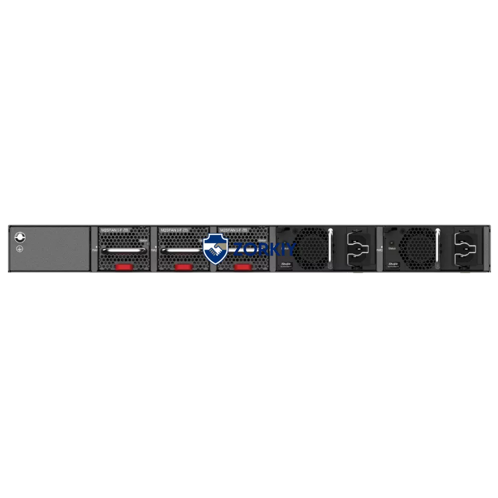 2 слоти для модульних блоків живлення (потрібен щонайменше один модуль живлення RG-PA600I-P-F або RG-PA1000I-P-F, модуль живлення за замовчуванням не встановлений), 3 слоти для модульних вентиляторів (за замовчуванням встановлено 3 модулі вентиляторів)